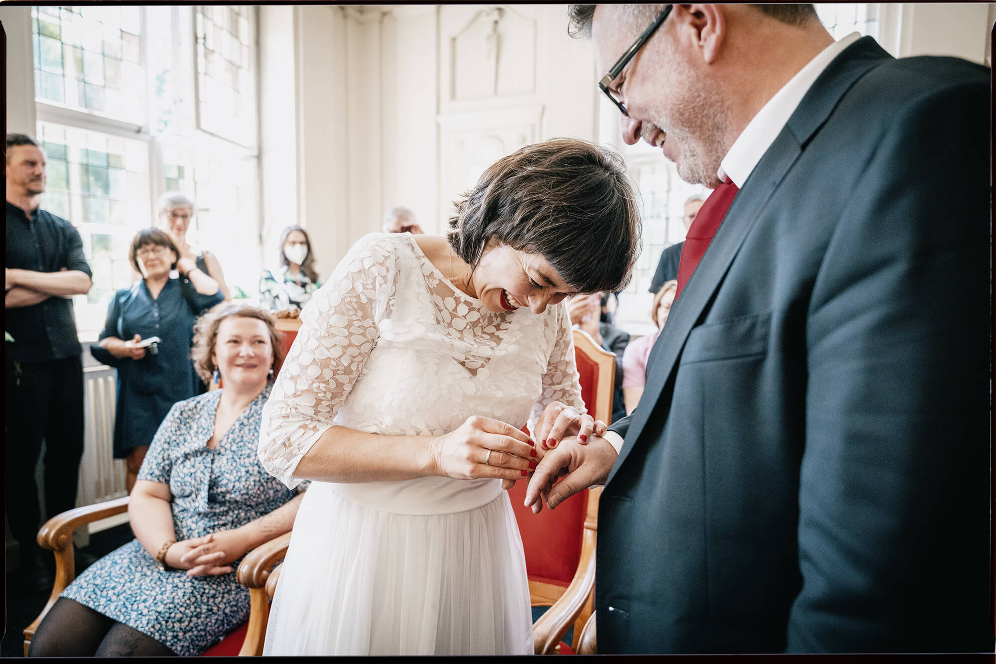 Wir sind vielleicht schon beim Getting Ready an eurer Seite, stehen neben euch im Standesamt oder am Altar und begleiten euch durch die emotionalsten Momente des Tages. Ähnlich wie ein stiller Begleiter bewegen wir uns nah um euch herum – dafür braucht es Vertrauen, Erfahrung, Respekt und Empathie. Ein gutes Bauchgefühl ist daher die wichtigste Grundlage für authentische Hochzeitsfotos.
